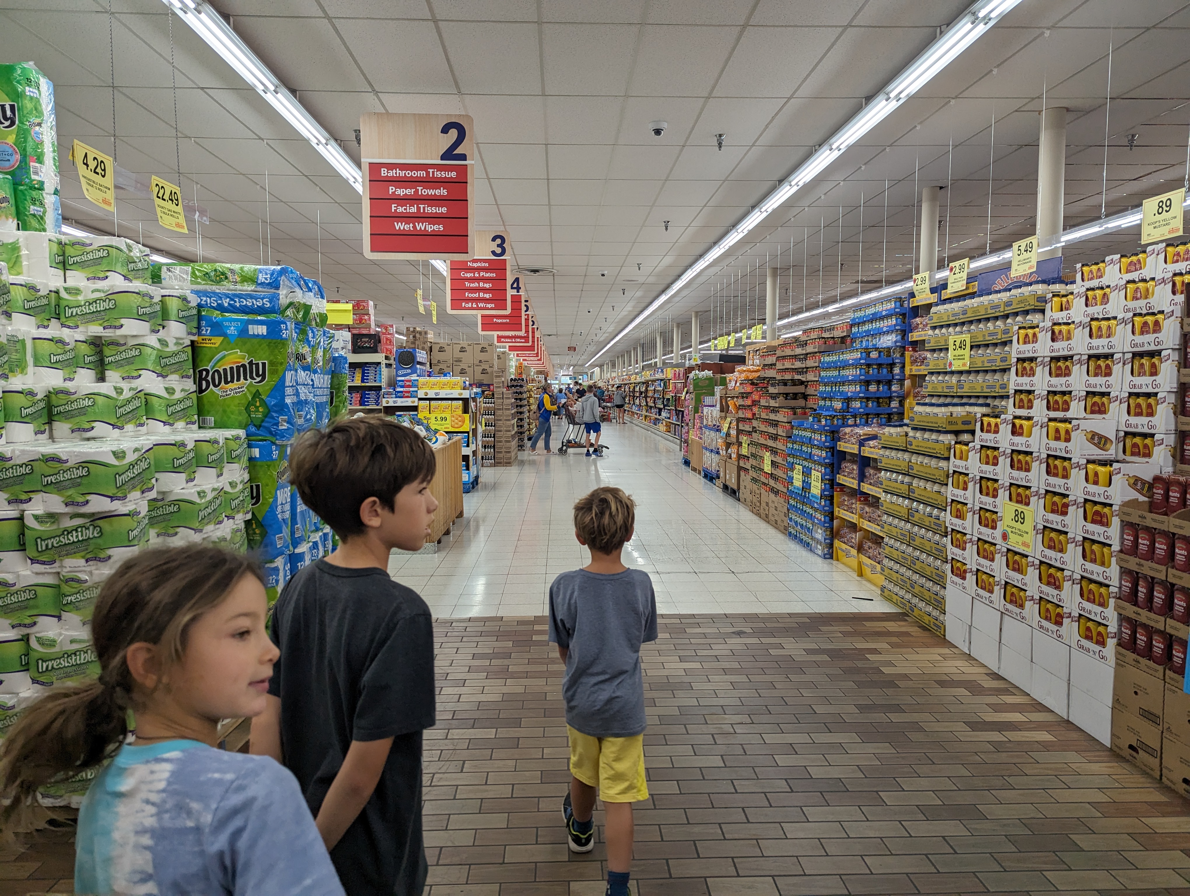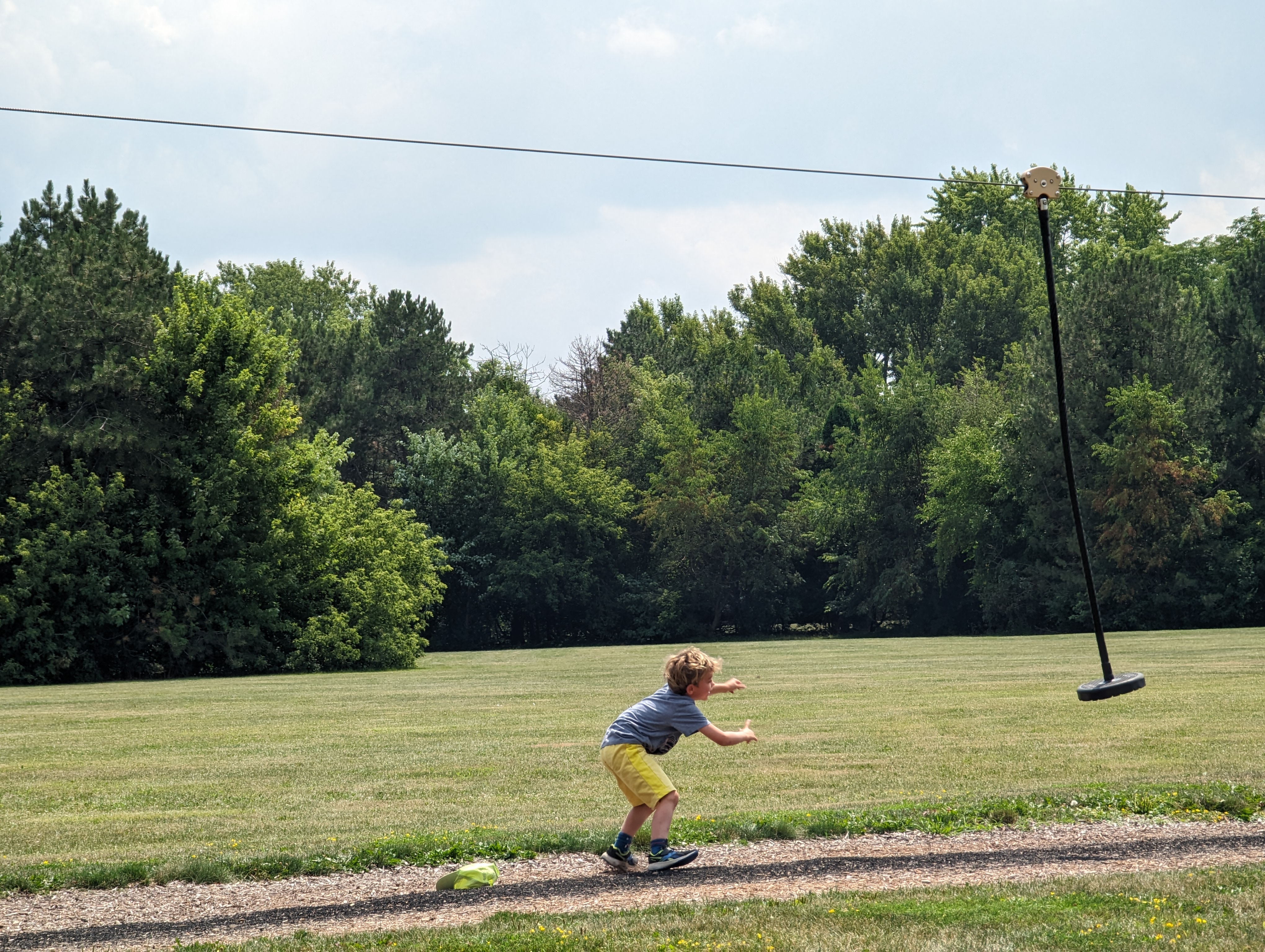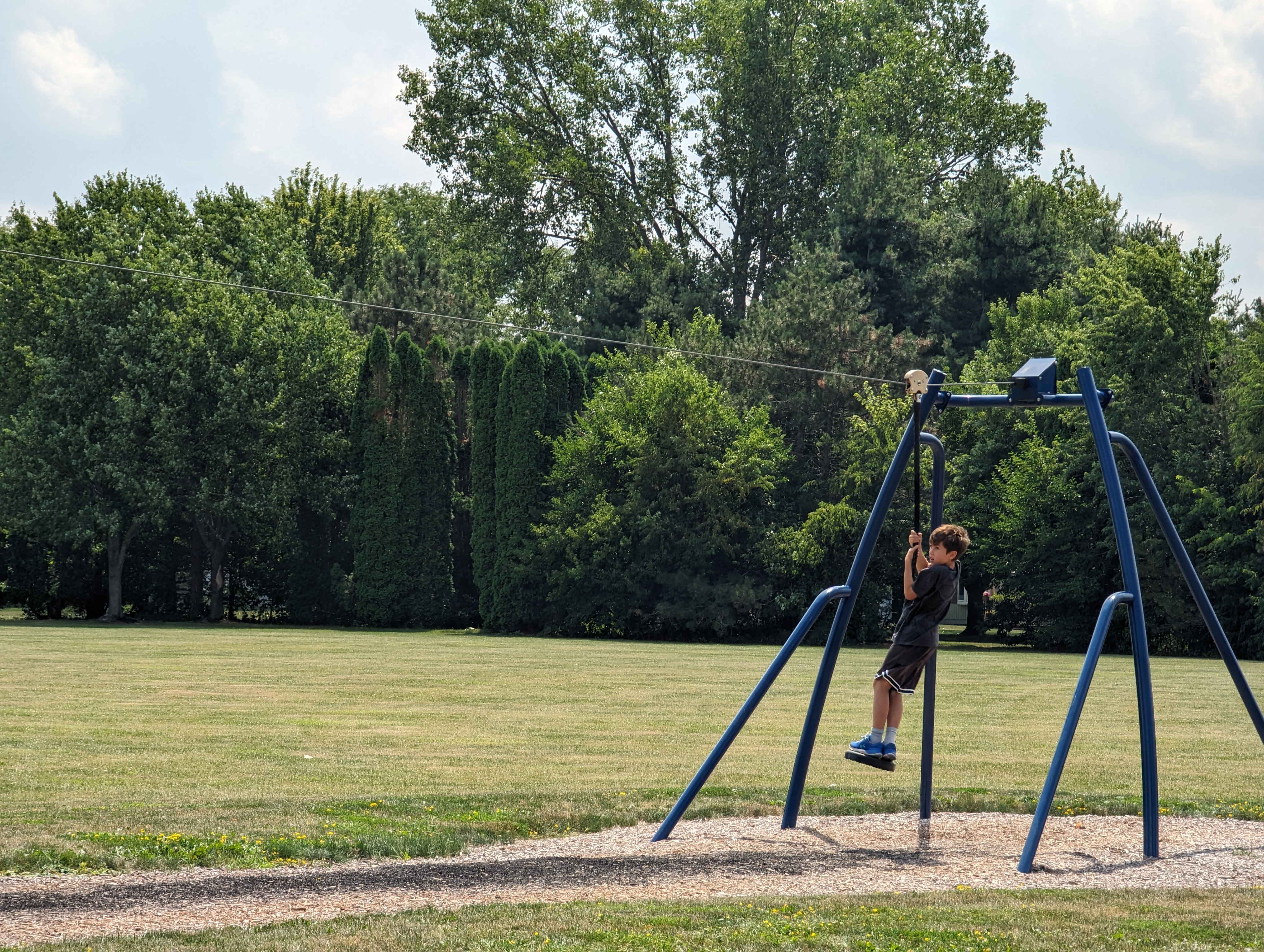 We drove until Janesville to take a lunch break, where we stopped at the Workman’s Grocery store. We could not believe the size of the store! As big as a Costco and there were SO many varieties of everything. They literally had an aisle of just Kellogg’s cereal and another aisle for General Mills cereal. We picked up types of apples we can’t get back home easily (Galaxy apples and lemonade apples from New Zealand). We are quite limited in how much we can carry in our van so we had to restrain ourselves. The kids felt I was torturing them by touring them around the grocery store with too many temptations they couldn’t have, so while Katherine finished shopping we made our way outside. It was mid day and the sun was getting quite strong. For lunch we headed to a nearby park, which to our surprise had a zip line! After lunch the kids had a lot of fun until they started fighting about the order of the line for the zip line. It was a hot day so that might have been getting to them. By then quite a few kids stopped by and the line for the zip line was getting long so it was time to hit the road again.