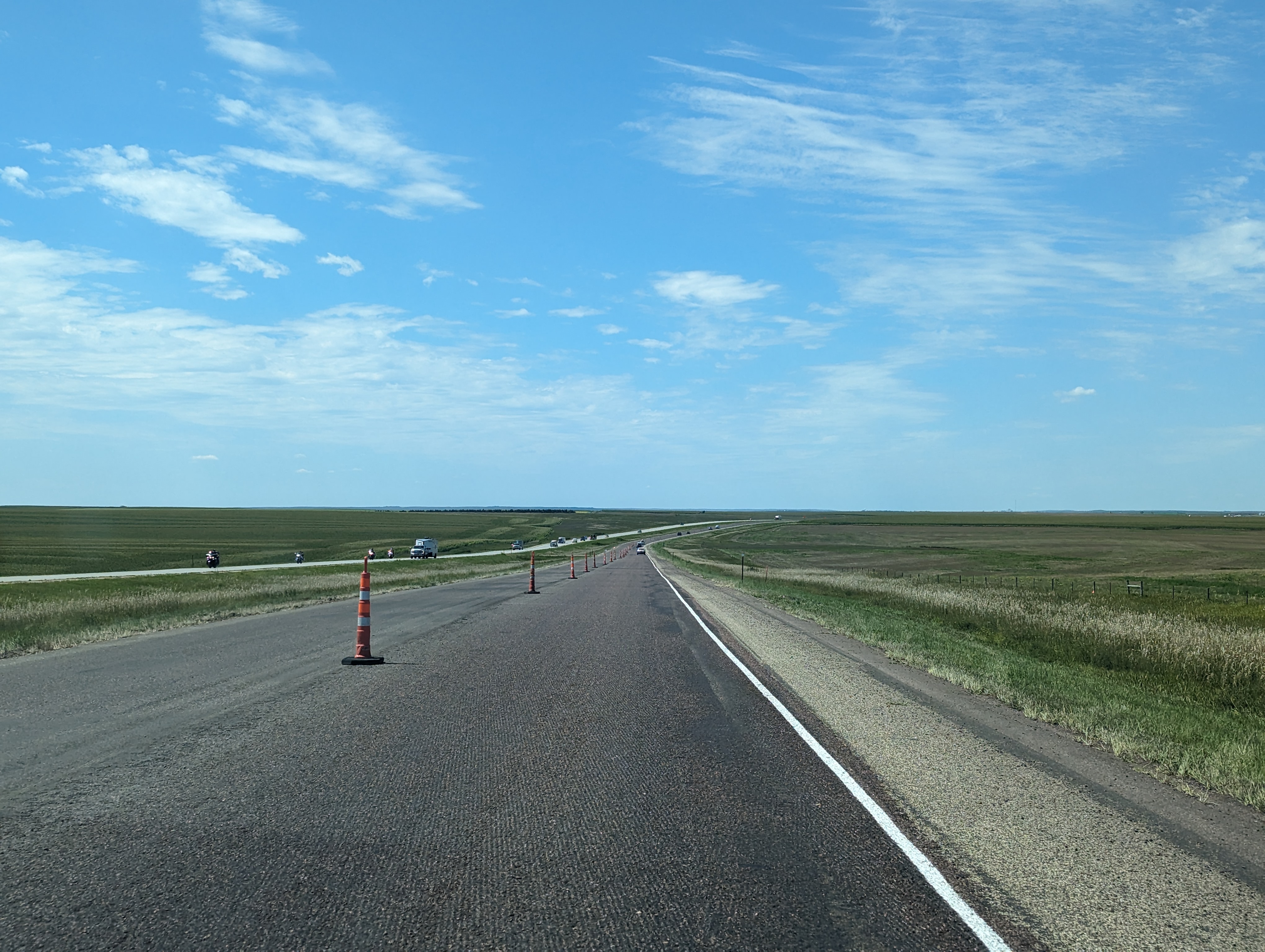 We started to get a little concerned of the potential storm. Out in the prairies we were very exposed, and knew some of the storms could get very serious. We kept checking the wether forecasts and it looked like we would make it to the badlands in time.