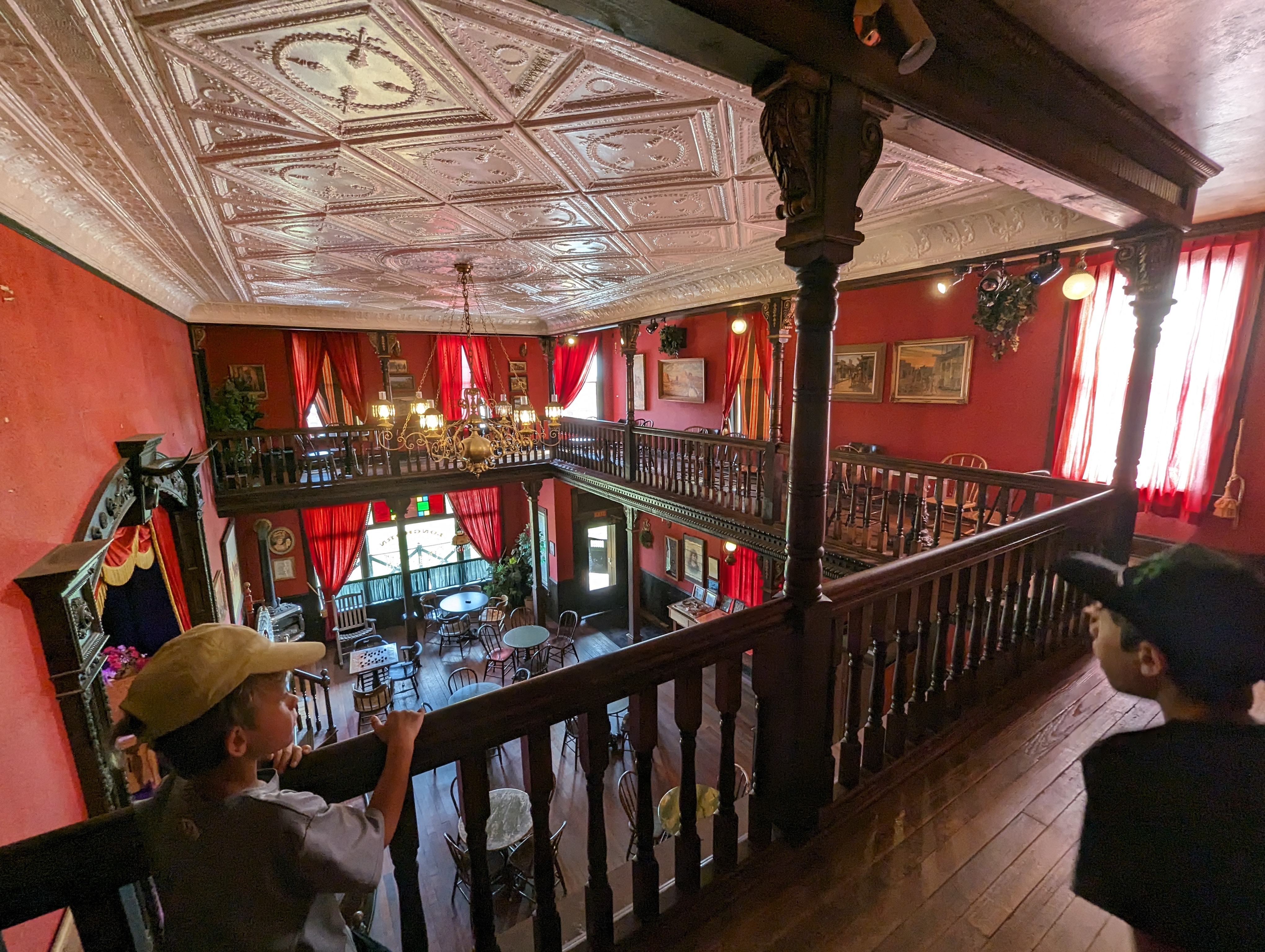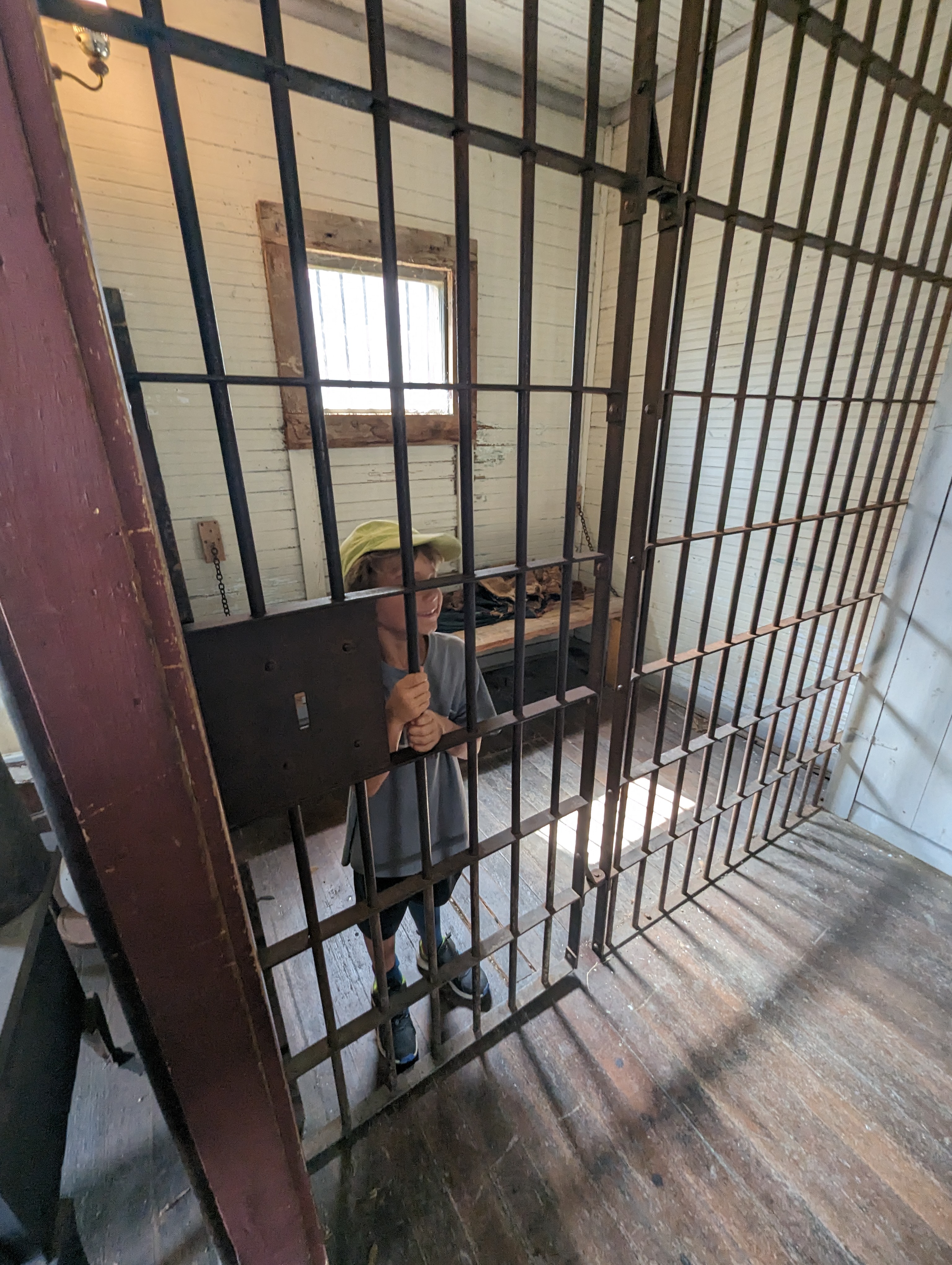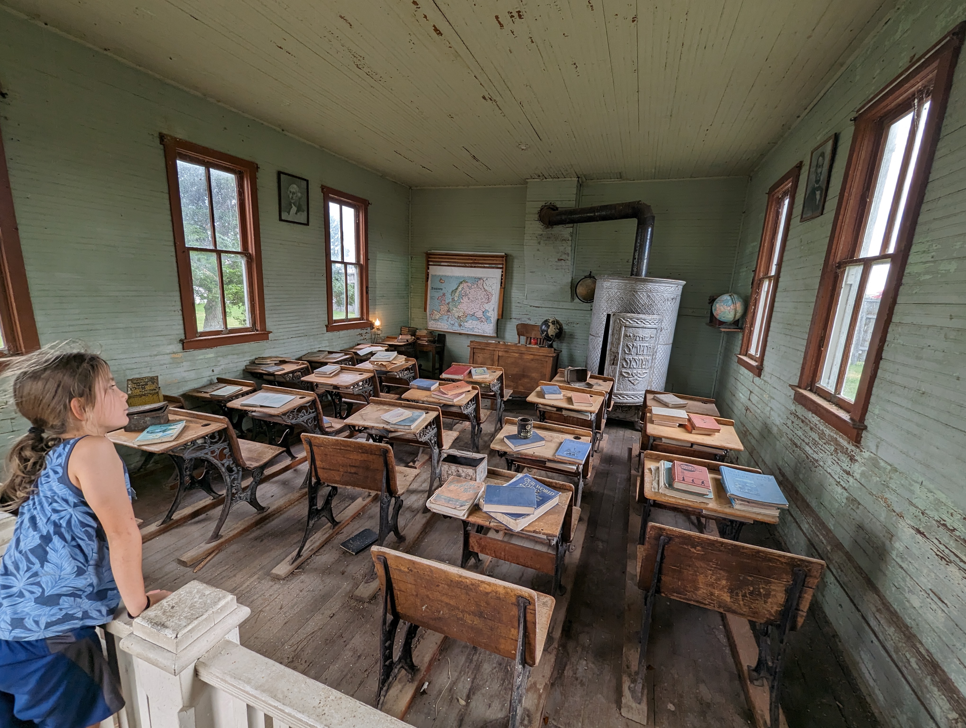 The collection of old original cowboy buildings from the 19th century is a tourist attraction and entrance fees are required, but the man at the entrance said “let me save you some money” and let two of our kids in for free, which was much appreciated as (things really add up when you are family of 5! It was neat to see how small some of the houses were from that era. The saloon was completely maintained top to bottom and was very impressive, and they had a full working bar set up inside, a stage, and a lot of tables. They even had original bullet holes of the saloon on display. It would have been a neat place to grab a couple drinks. The old school house was also well preserved, and had a massive furnace to keep the small classroom warm for those bitter winters (most of the buildings appeared to have had no insulation).