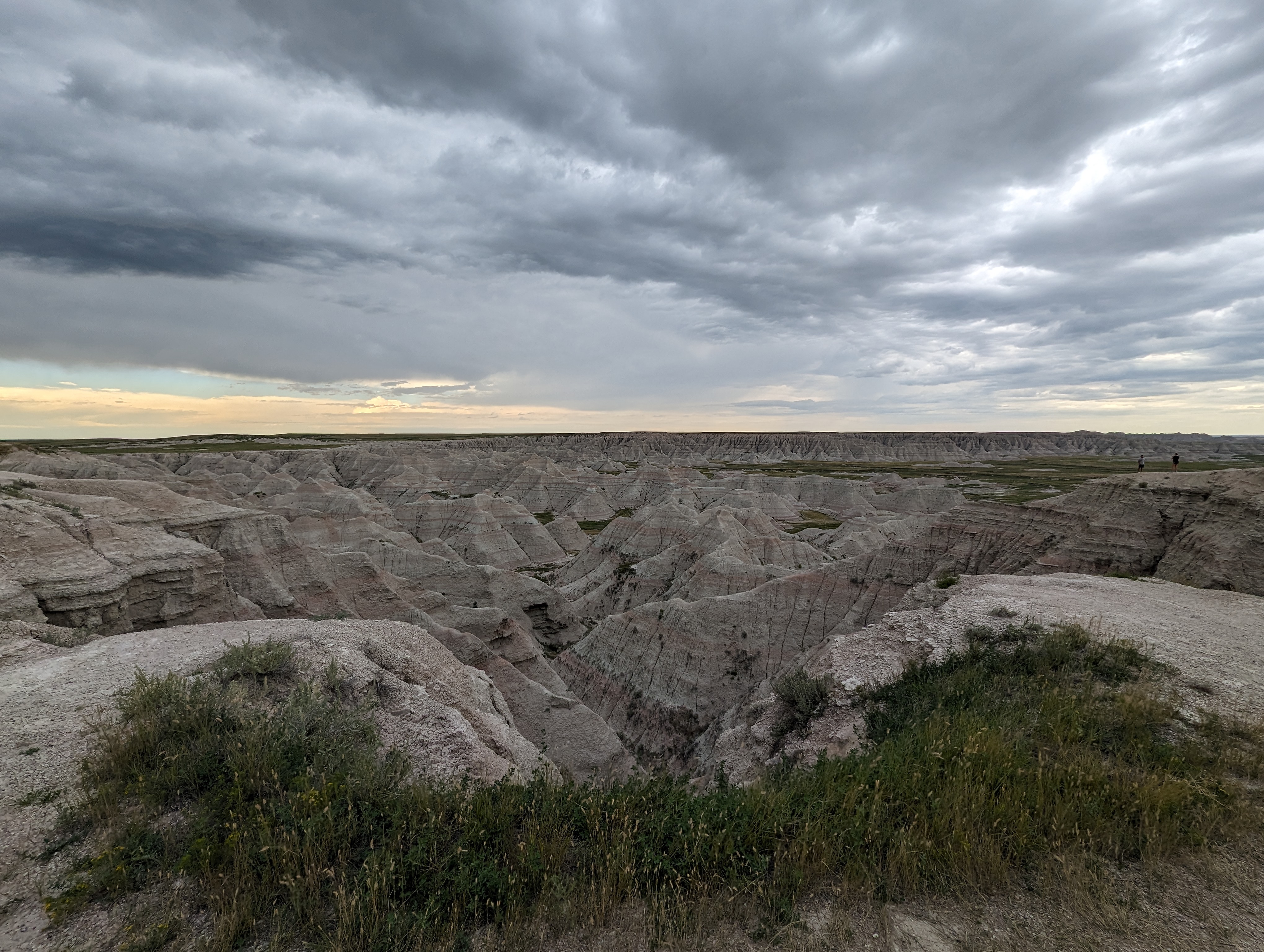 As we got off the highway there was a national monument for a US defence missile site from the Cold War era. Unfortunately we didn’t have time for a visit as it was getting close to 4:30PM at this point. As we headed towards the badlands the landscape changed dramatically, and we were in absolutely awe. Incredible view of the badlands as far as the eye could see. We entered the national park and stopped at the first look out. Out in the distance we were starting to see lightning from the storm. We didn’t stay too long and headed to our campground that was a short drive away. Unfortunately the visitor centre had closed at 5PM.