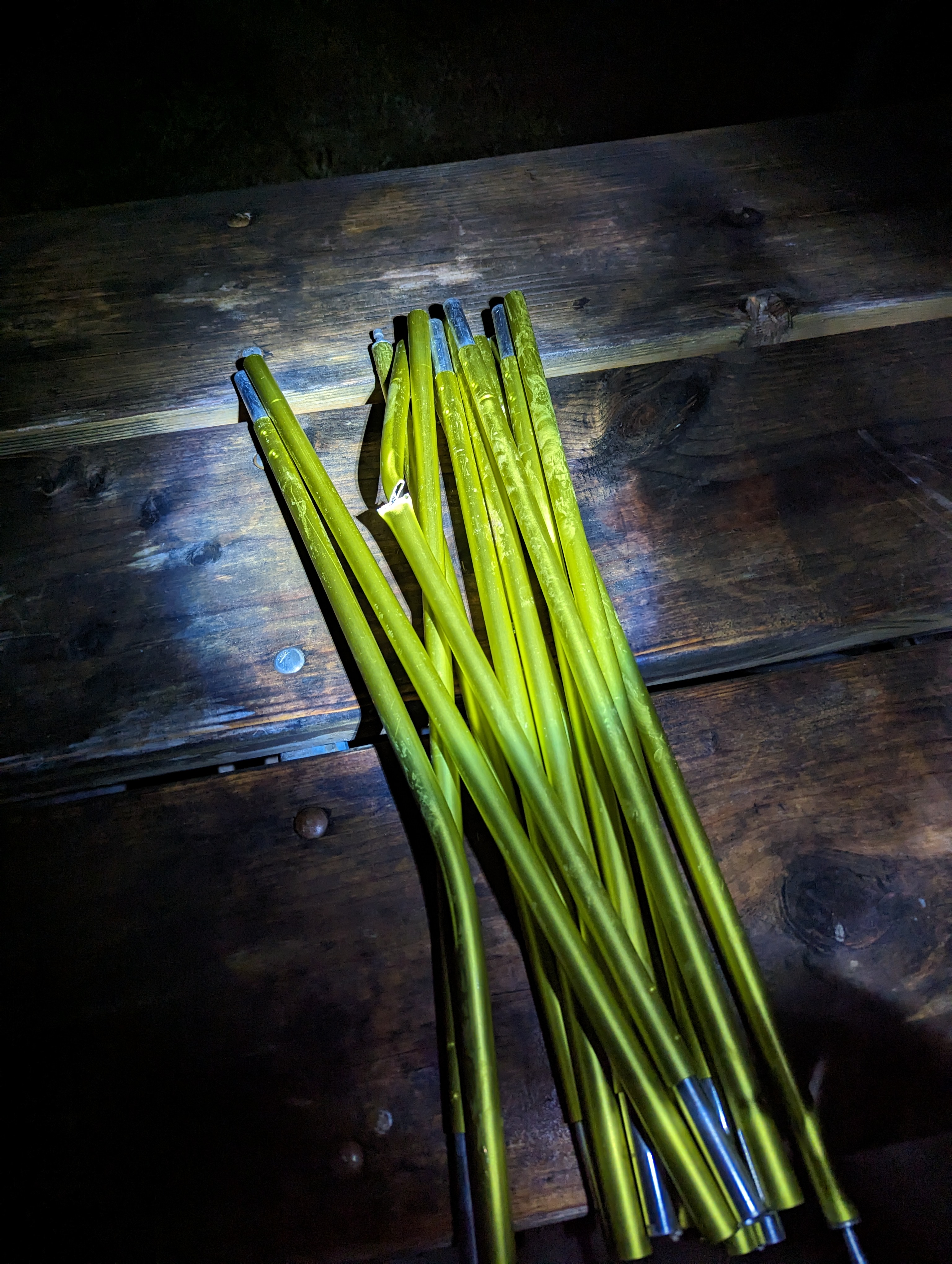 The storm had passed after about an hour and the rain subsided. According to the weather forecast more rain was headed our way for 9PM, so we had about an hour to get ready for bed and into our tent. We drove back to the campground to find our tent looking a little rough. We assessed the damage and one of the poles had been bent in half. Aside from that everything else seemed ok and the inside of the tent was dry. We had never had a tent get damaged before, but Katherine and I had camped for 6 months on our bike trip in a 3 person tent that was much more protected from winds than the 8 person tent we were now using. Thankfully we were also carrying a 6 person tent also from Marmot, which used the identical poles so we were able to switch out the damaged tent pole right away. Otherwise it would have been a long night and also a definite headache for our trip. Phew!