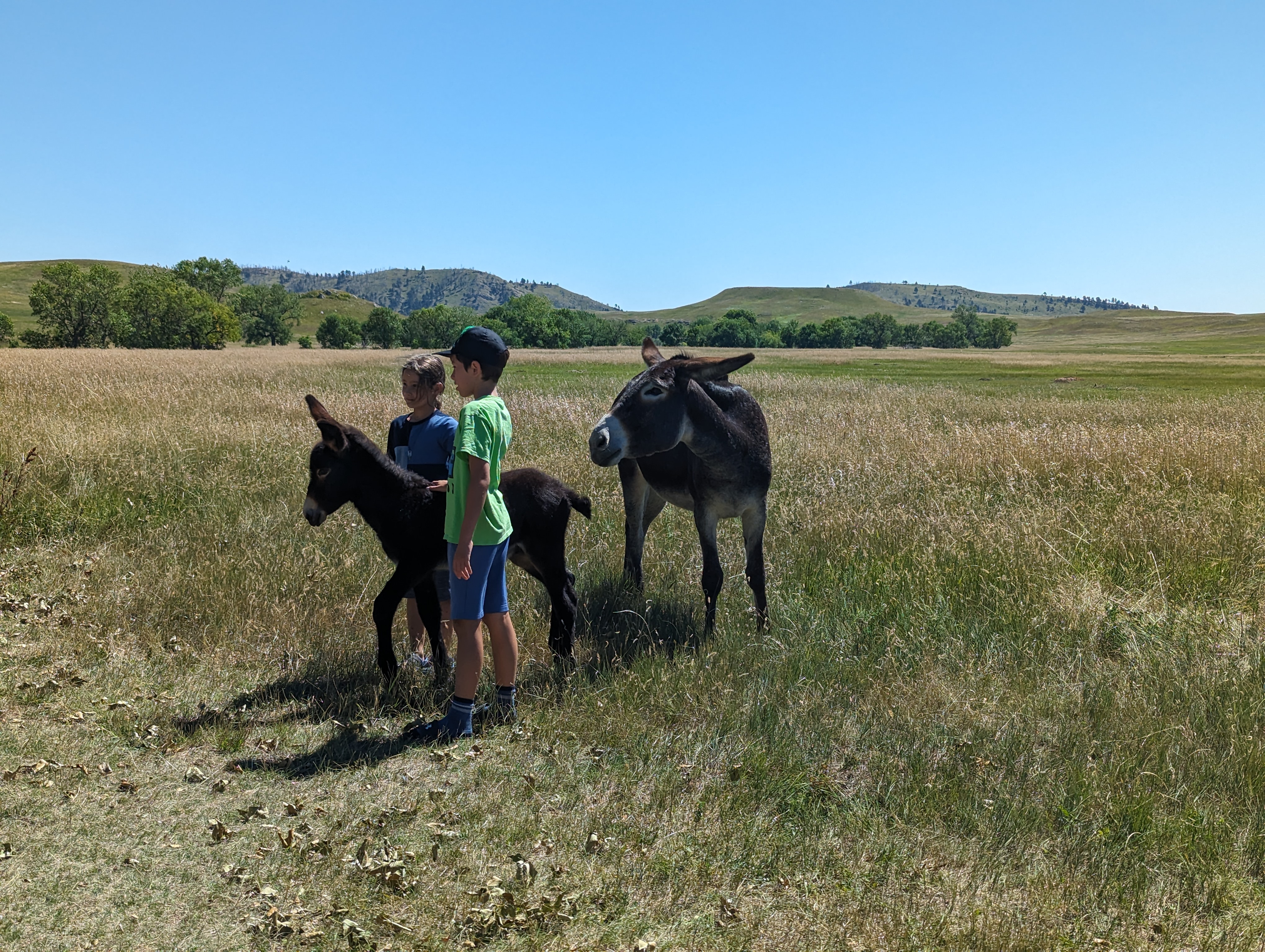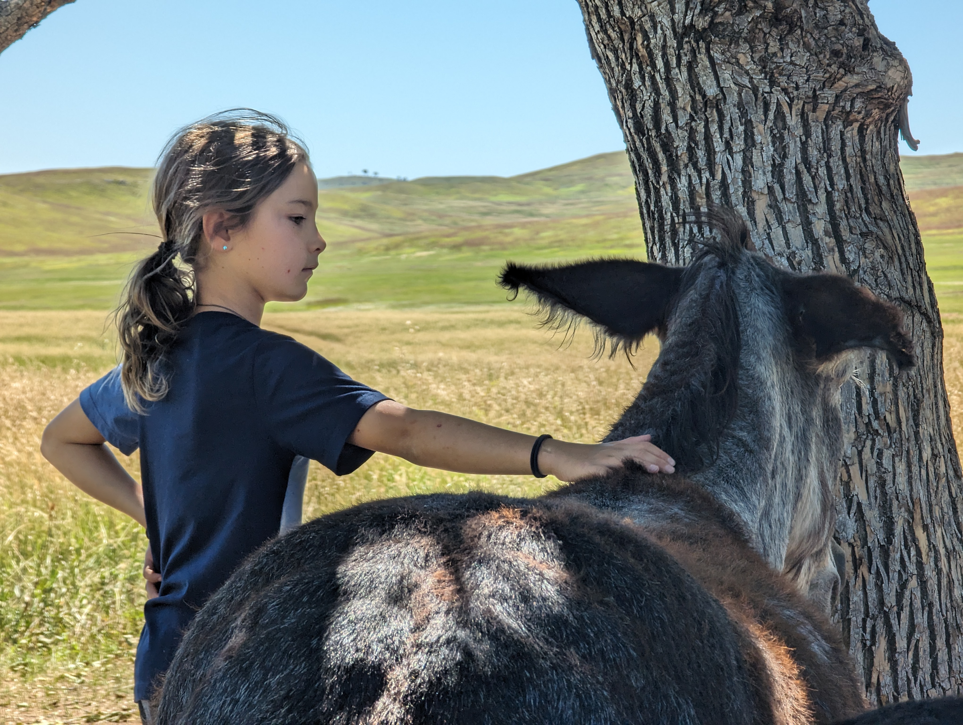 We then headed back on the loop and came across a number of Burros (who look like donkeys) that were taking shelter from the sun under a few trees. There were many people there petting the donkey like animals. Our kids had a great time getting close to them. There was even a mother and a young calf there. There were also prairie dogs nearby.