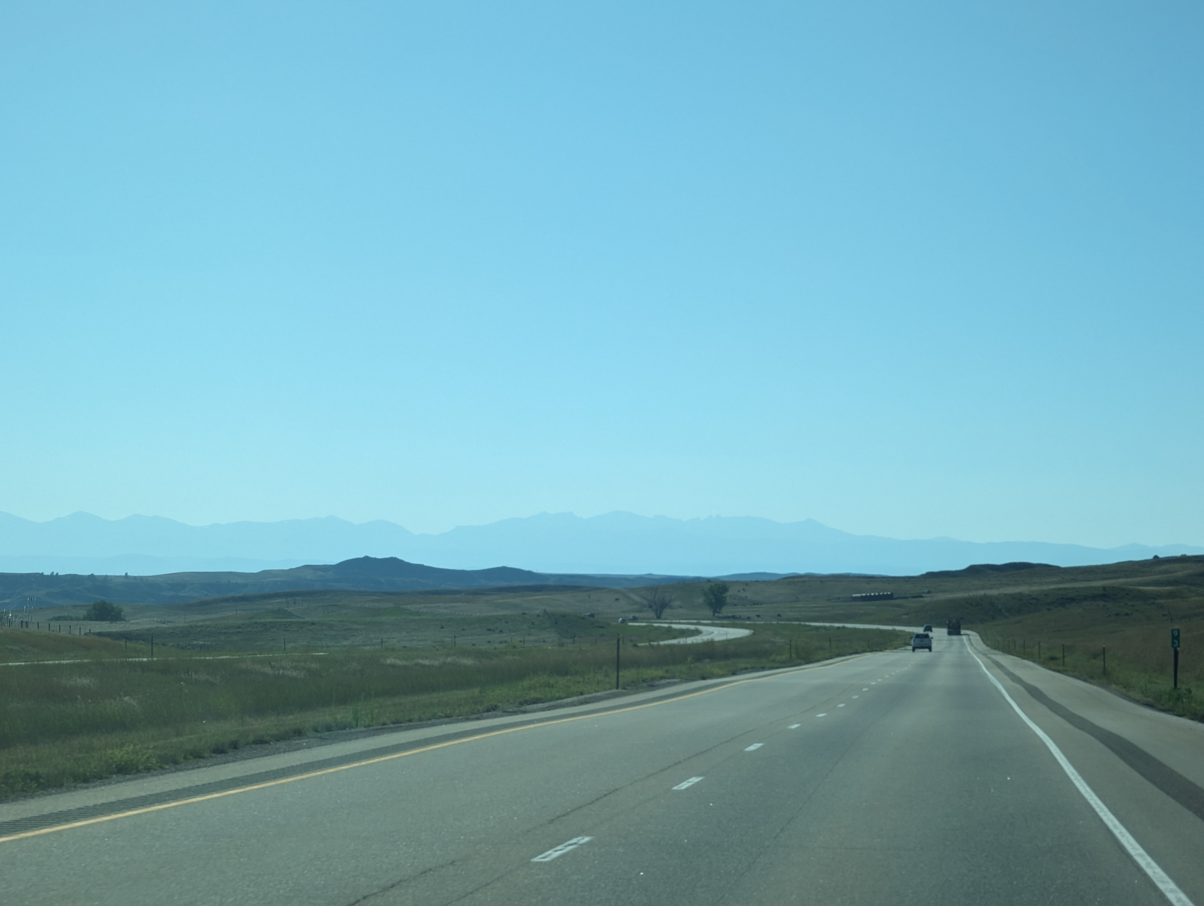 We then headed back on the road towards the I-90 interstate. It was back to the flat prairies. Before getting to the I-90 we could see the devil’s monument out in the distance.