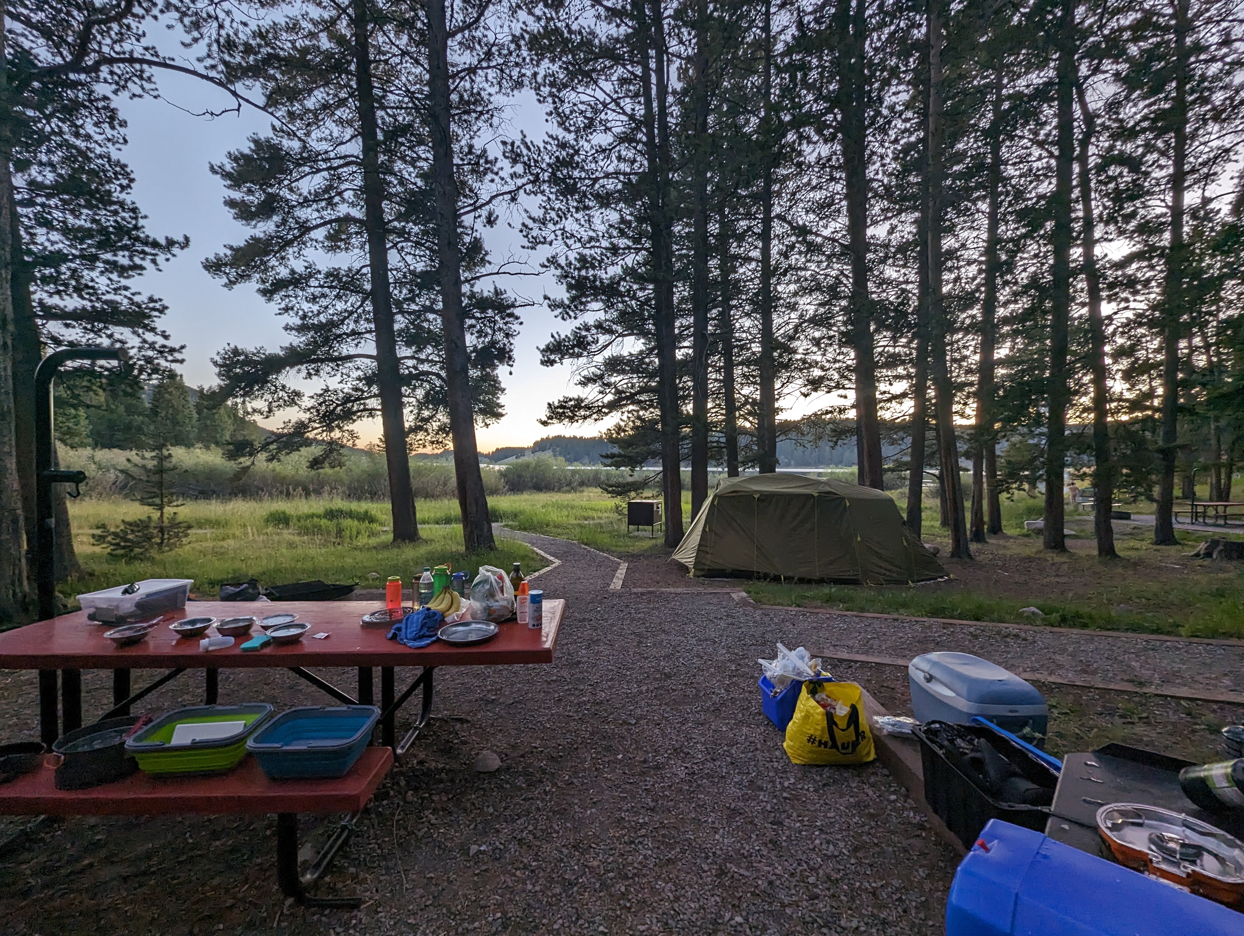 We woke up to a cool morning, but with the sun shining it quickly warmed up. Having to set up and pack up our tent and everything inside every day was starting to get tiring, and we were looking forward to getting to Grand Teton and Yellowstone in a few days where we will be spending many multiple nights in only a few campgrounds. We definitely should have planned another night in the area based on all the things to see and do, but we decided if we weren’t driving to Yellowstone we would never have even known about the whole area and were grateful for the time we had to spend.