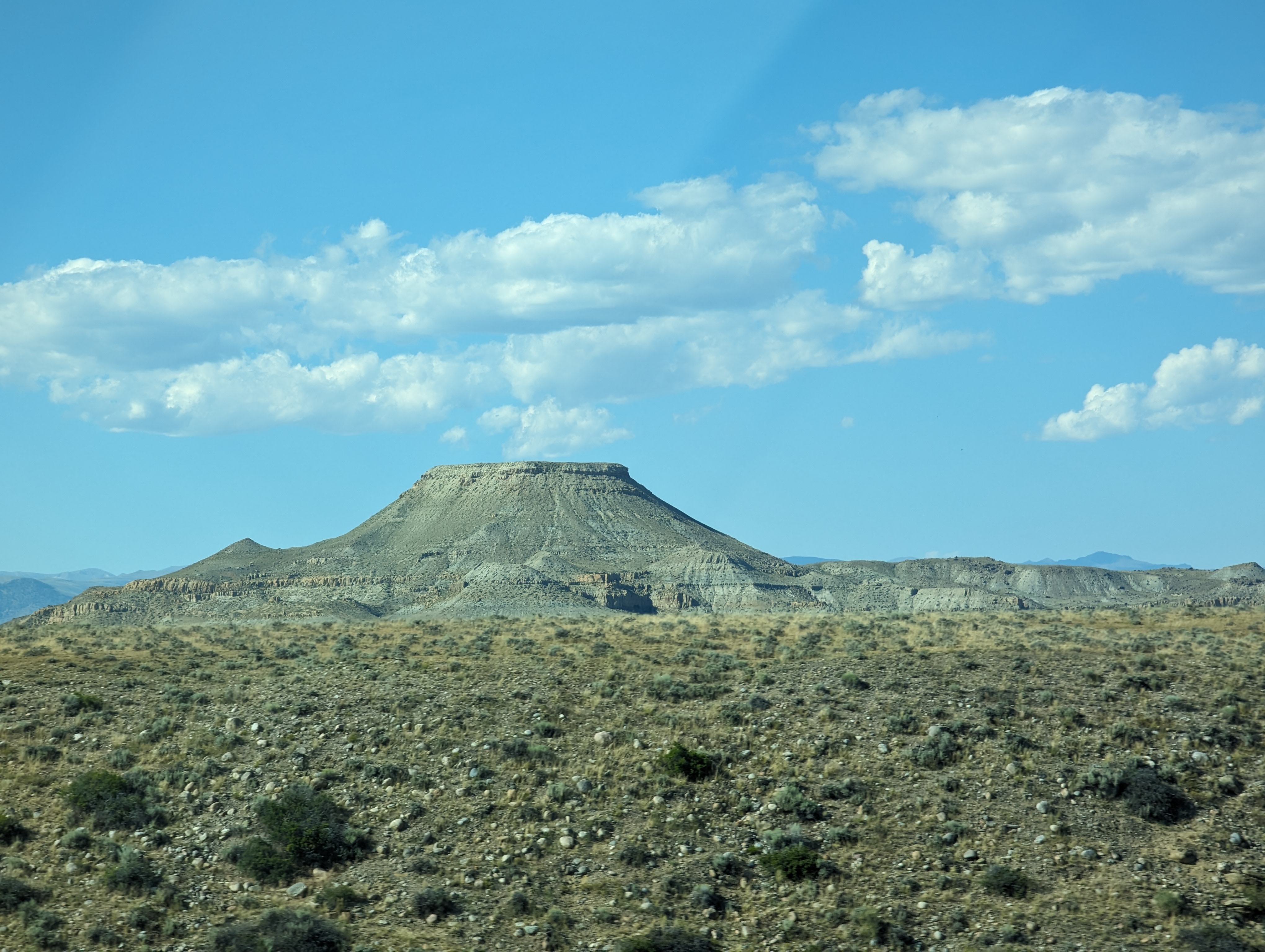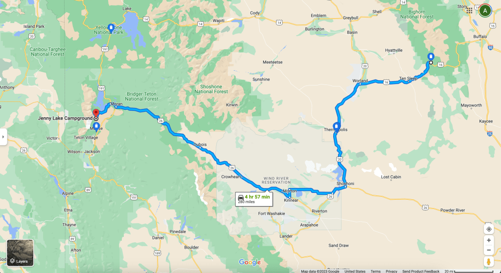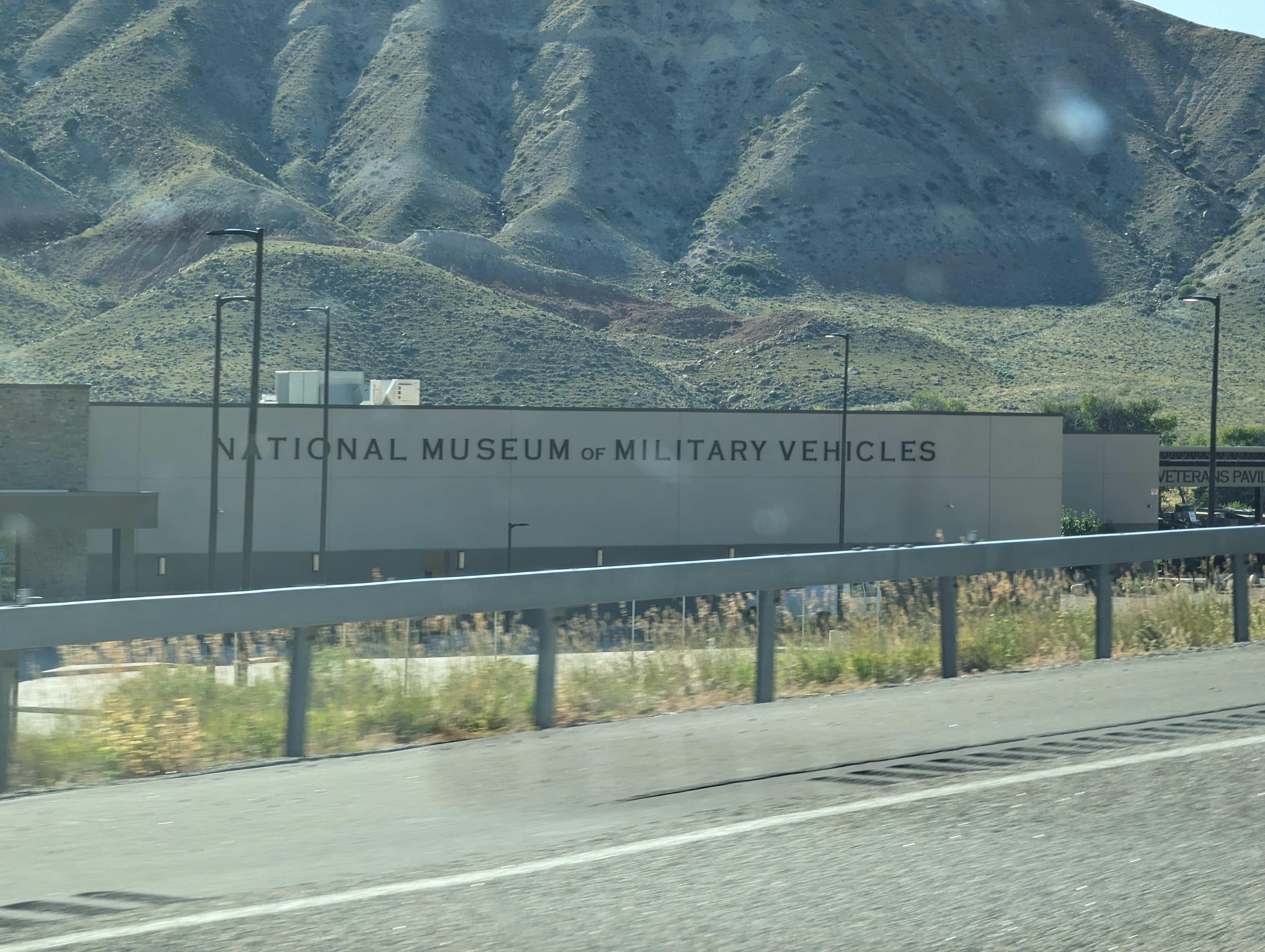 We continued our drive through more beautiful scenery. We could begin to see what we assumed were the Teton ranges in the distance. We passed by the National Museum of Military Vehicles, which seemed to be in the middle of nowhere. It would have been a neat stop if only we had the time. As it was we had underestimated the drive for the day and was going to be arriving to our campground past 7PM, something we had wanted to avoid after having done it for a couple campgrounds before. Unfortunately this meant we couldn’t really afford to stop in many of these places past Thermopolis. To be honest there wasn’t a lot of places to stop, and the temperature was also still quite high. We saw many impressive homes and very unique hills. After more than 2 hours of driving we went through the town of Dubois, and saw a sign at the grocery store that said they sold bear spray so we turned around to get some as we realized we didn’t have any. We thought it might be cheaper than getting it at the park, but it was still $50 US for a can. Everyone needed a bathroom break at this point, and we stopped by the National Bighorn Sheep Interpretive centre around the block but it had closed a 5PM (about 40 min prior), you had to pay to enter, and we didn’t really have the time. We got back into the van and continued on.